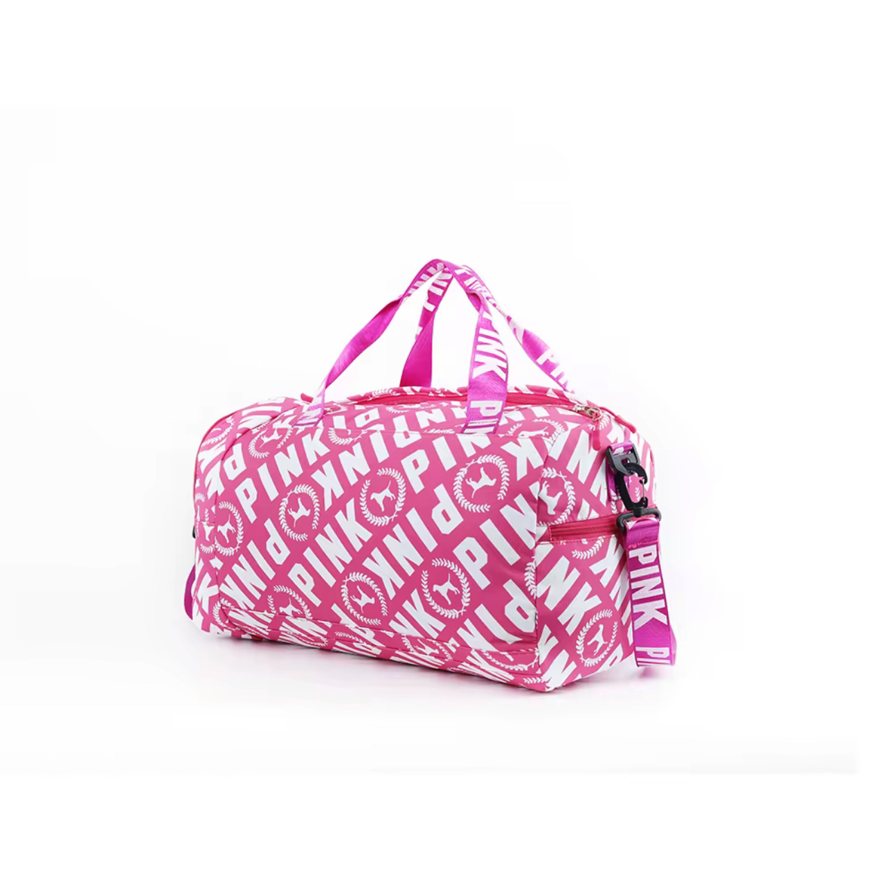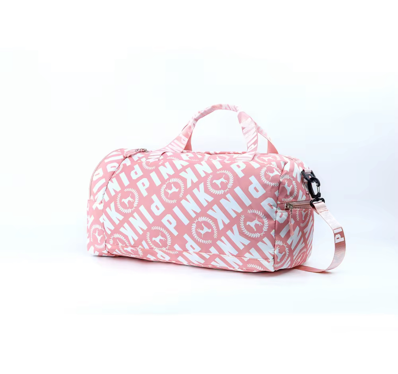 The Pink duffel bag is a stylish and functional accessory perfect for any occasion. Made from durable materials, it features a spacious interior and multiple compartments to keep your belongings organized.